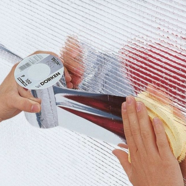 A Dörken Delta Poly-Band P-100 ragasztószalag a DELTA®-REFLEX fólia átlapolásainak fényes oldali leragasztására szolgál.