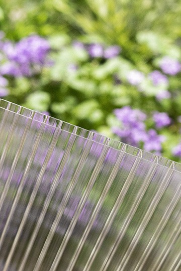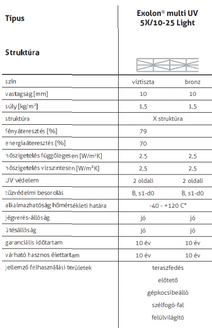 Az Exolon multiUV 5X/10-25 üregkamrás polikarbonátlap X-struktúrájú lap, 2 oldali UV védelemmel.