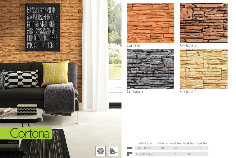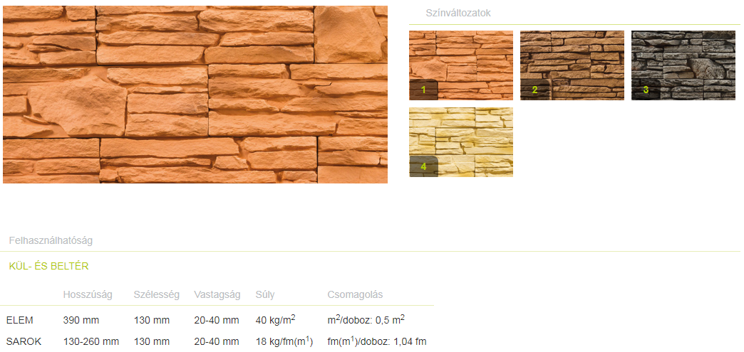 Tégla hatású termékeknél 1 m2 falburkolat 1 cm-es fugával számolva értendő!