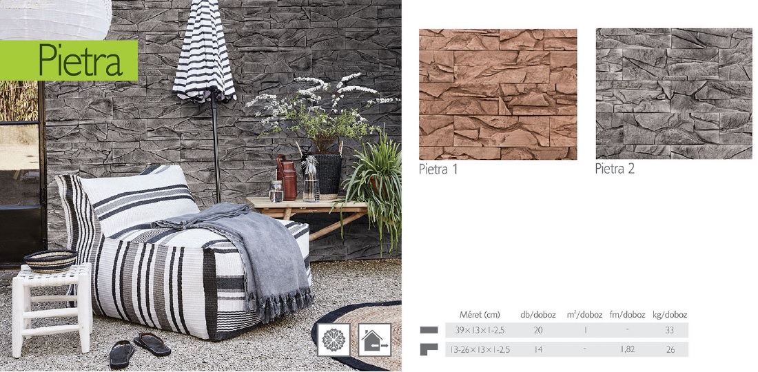 Tégla hatású termékeknél 1 m2 falburkolat 1 cm-es fugával számolva értendő!