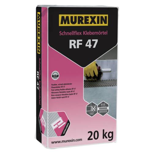 A Murexin RF 47 egy gyorsan kötő, flexibilis, fokozott követelményű, cementbázisú, műanyag adalékokkal javított, hidraulikus kötésű, vékonyágyazású ragasztóhabarcs különböző fal- és padlóburkolat ragasztására 3-5 mm rétegvastagságig, csökkentett lecsúszással. Különösen alkalmazható olyan helyeken, ahol gyors szilárdulás szükséges. Kül- és beltérben használható, kerámia burkolatok, gres, klinkerlapkhoz, természetes- és műkövek ragasztására, beton, vakolat, cementbázisú aljzatok, gipszkarton, pórusbeton alapfelületekre.