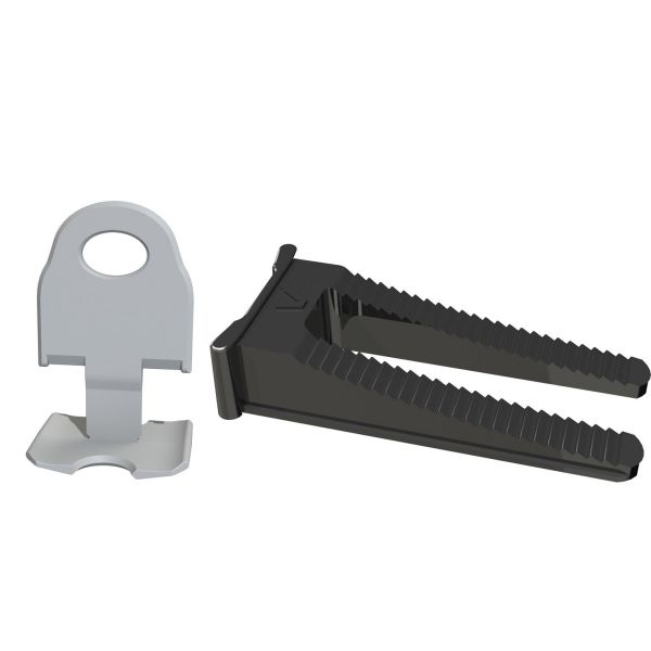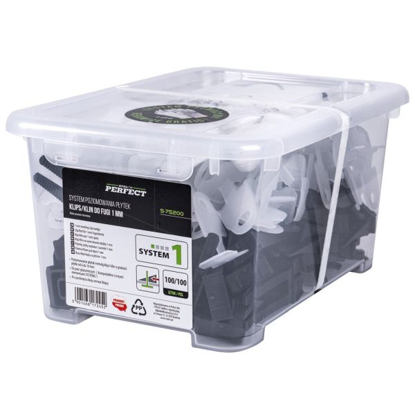 Stalco SYSTEM 1 szintező készlet. A csomag tartalma: 100 darab SYSTEM 1 szintező ék, és 100 darab SYSTEM 1 lapszintező kapu.